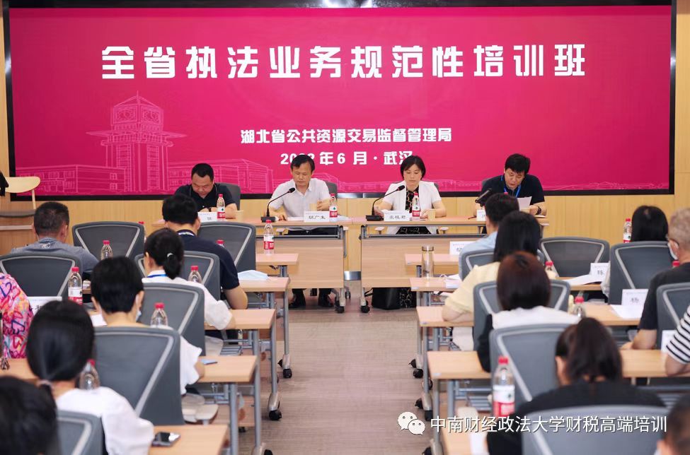 胡广生副局长首先代表湖北省公共资源交易监督管理局向大力支持此次培训的米兰电竞·(中国区)财税学院表示衷心的感谢!向参加此次培训的同志们表示热烈的欢迎!接着,胡局长指出,此次培训是自疫情发生以来,全省系统组织开展的首次执法业务集中培训,也是省局深入贯彻落实习近平法治思想、经济思想,助力优化营商环境,推行包容审慎监督,推动执法工作由被动式、粗放式向主动式、精准式转变的一项重要基础性工作。省局党组书记、局长黄明对此次培训工作十分重视,要求执法处精心组织,务求实效,目的就是要组织和动员全省系统执法队伍按照省局统一部署,进一步增强政治意识,树牢全局观念,以优化营商环境、推行包容审慎监管、高效管好一件、高效办成一件事、切实解决招标难等为重点,以学促行,以行促学,整体提升全省系统的执法素质、执法能力和依法行政水平,树立新形象,展示新担当,干出新作为。最后,胡局长祝本次培训班取得圆满成功!祝大家学有所成,工作进步!