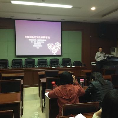 (通讯员:杨柳、杨晨光)2015年4月16日晚上6:30,由校研究生院主办、财政税务学院承办的“文澜博导讲堂”第一二二讲在文泉楼北403会议室精彩开讲。本次演讲嘉宾是财政税务学院博士生导师、第十、第十一届全国人大代表、湖北省统计局副局长叶青教授,他以“全国两会与湖北发展思路”为主题,全面而又深入的为同学们分析了两会以后中国的“新常态”以及湖北省的发展机遇。