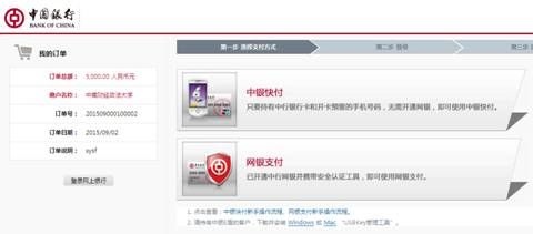 注:为了资金及时到账,若条件允许,请优先选用中国银行网上支付。