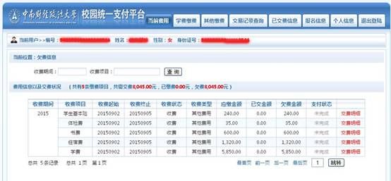 二、登录进入后显示以下画面,显示内容为个人应缴费用