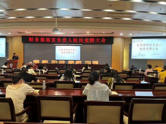 8月29日,财务部在中原楼七楼会议室,召开部室负责人轮岗竞聘大会,人事部岳洋老师受邀出席,财务部全体员工参加会议,会议由邓宏军副部长主持。