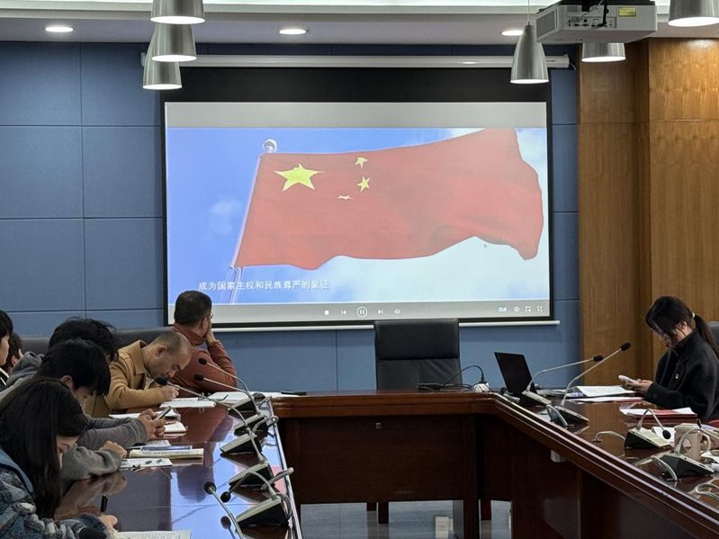 理论学习结束后,全体党员集中观看爱国主义教育纪录片《曾联松一生清廉为国旗》。14分钟的影片中,曾联松同志设计国旗的初心、坚守清廉的一生令人动容,进一步激发了党员的爱国情怀与责任担当,让“守护国旗、践行初心”的信念更加坚定。