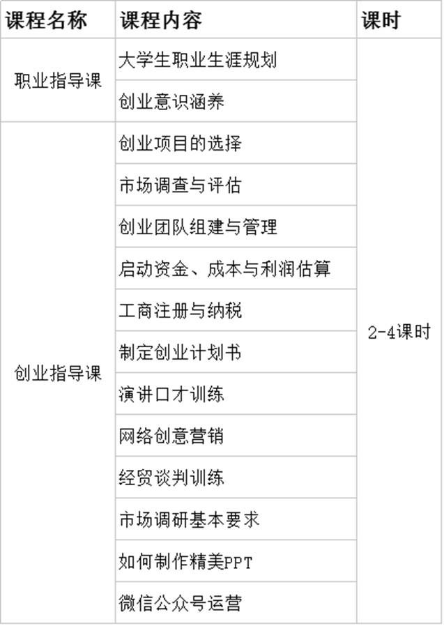 理论知识培养由职业指导和创业指导两部分组成,训练营每单周开展理论知识培训,开设职业生涯规划、创业意识培养等职业指导课程,课程体系如表一所示: