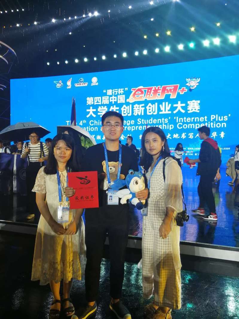 (通讯员:李司铎 余秋廷 学生记者:梁雷珊 何沫妍 胡金成)10月13-15日,由教育部、中央网络安全和信息化领导办公室、国家发展和改革委员会等13个部委和福建省人民政府共同主办、厦门大学承办的第四届中国“互联网+”大学生创新创业大赛总决赛在厦门大学举行。中共中央政治局委员、国务院副总理孙春兰出席大赛闭幕式,转达了习近平总书记对参加大赛和“青年红色筑梦之旅”活动全体同学的亲切问候。我校参赛项目“忆年共享相册”获得主赛道成长组“银奖”,“不期而玉:千元轻奢翡翠”获得主赛道初创组“铜奖”,实现了我校创业项目入围中国“互联网+”大学生创新创业大赛国赛零的突破,1银1铜的成绩也创造了自大赛举办以来我校参赛的最好成绩。
