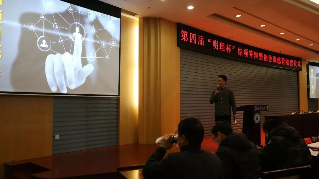 12月9日下午,由校团委(创业学院)主办的第四届“明理杯”大学生创业大赛结项答辩会暨第五期“青春中国梦”大学生创业训练营结营仪式在南湖校区中原楼七楼会议厅顺利举行,答辩会的评委由湖北申铧产业投资管理有限公司投资总监纪力,华中农业大学团委组织部长、挑战杯创青春指导老师张进,创业学院副院长喻良涛、校团委副书记李司铎,校优秀创业校友代表、连续创业者、武汉麦科塔商务服务有限公司创始人李帅担任。