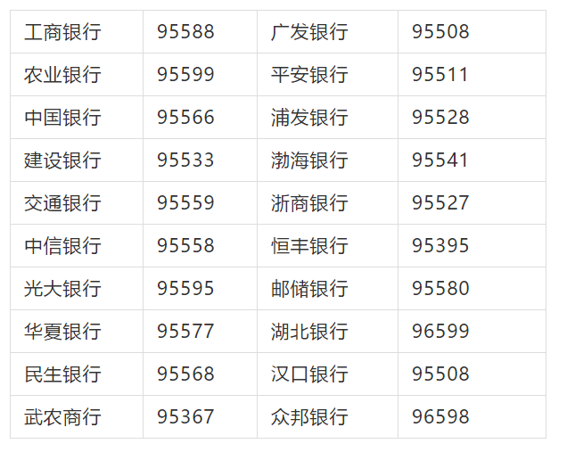 6. 各家银行客服电话号码是多少?