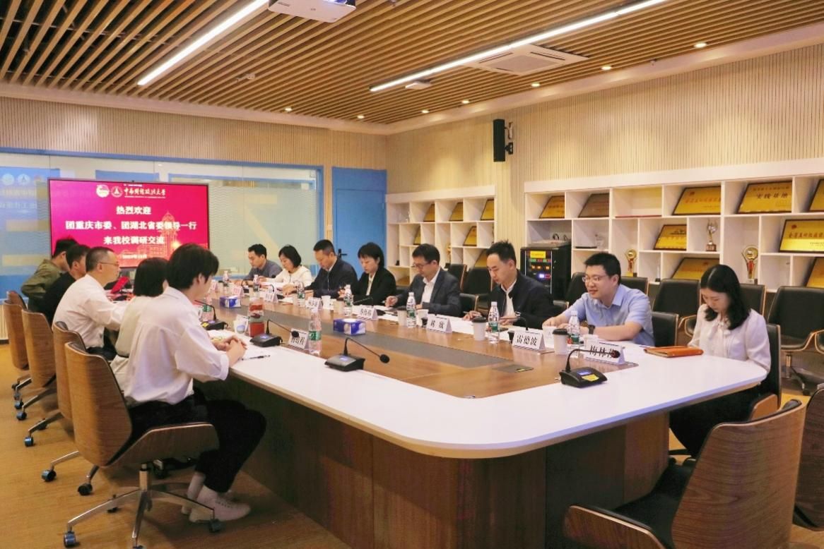 新闻网讯(通讯员 杨佳兴 冯馨月 摄影 钱欣媛)10月19日下午,团重庆市委副书记杨春渝、团湖北省委副书记蔡伟伟一行来校调研。重庆市青年创新创业促进会会长、重庆闳元实业(集团)有限公司董事长李仁波,重庆市青年创新创业服务中心负责人刘欣,重庆市青年创新创业基金会专职秘书长雷德波,重庆市青年创新创业促进会专职秘书长梅林莎,湖北省青年创业就业促进中心主任程慧芳,湖北省青创中心项目部梁成,校党委副书记陈狮和我校优秀创业学生代表李金龙、雷圳鹏、杨皓程参加调研座谈。座谈会由校团委书记黄小妹主持。