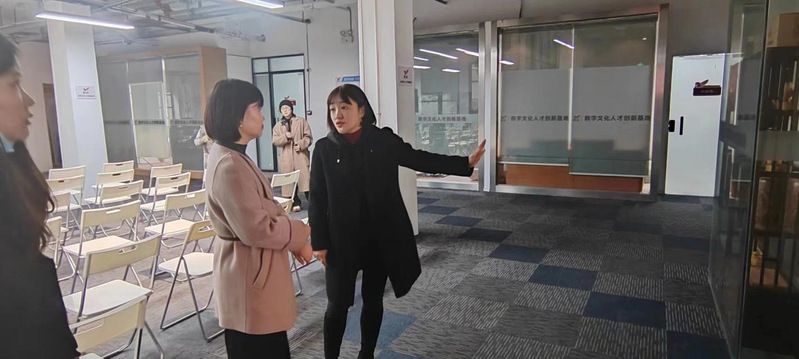 仪式开始前,陈霞总经理带领我校文创团队参观介绍了黎黄陂路的“青春集市”和数字文化创新基地,并与我校文创创业团队进行了多方面的深入交流,给了我校创业团队很大的启发。
