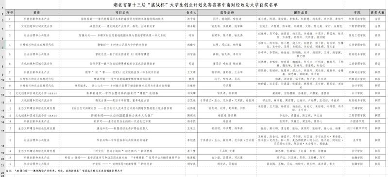 大赛自启动以来,先后组织开展了校级竞赛、省级复赛和省级决赛。在经过资格审查、省级复赛和省级决赛等环节综合审定和每支创新团队的激烈角逐后,我校在省赛决赛中荣获了金奖项目2个,银奖项目4个,铜奖项目13个,现将有关名单予以公布。