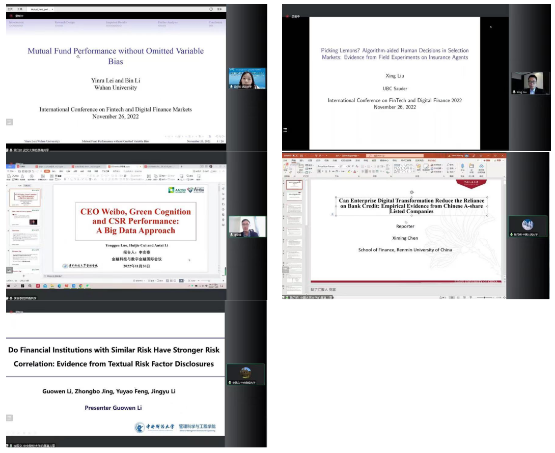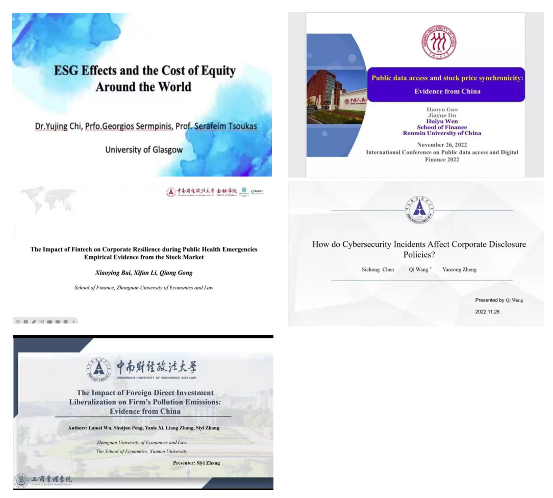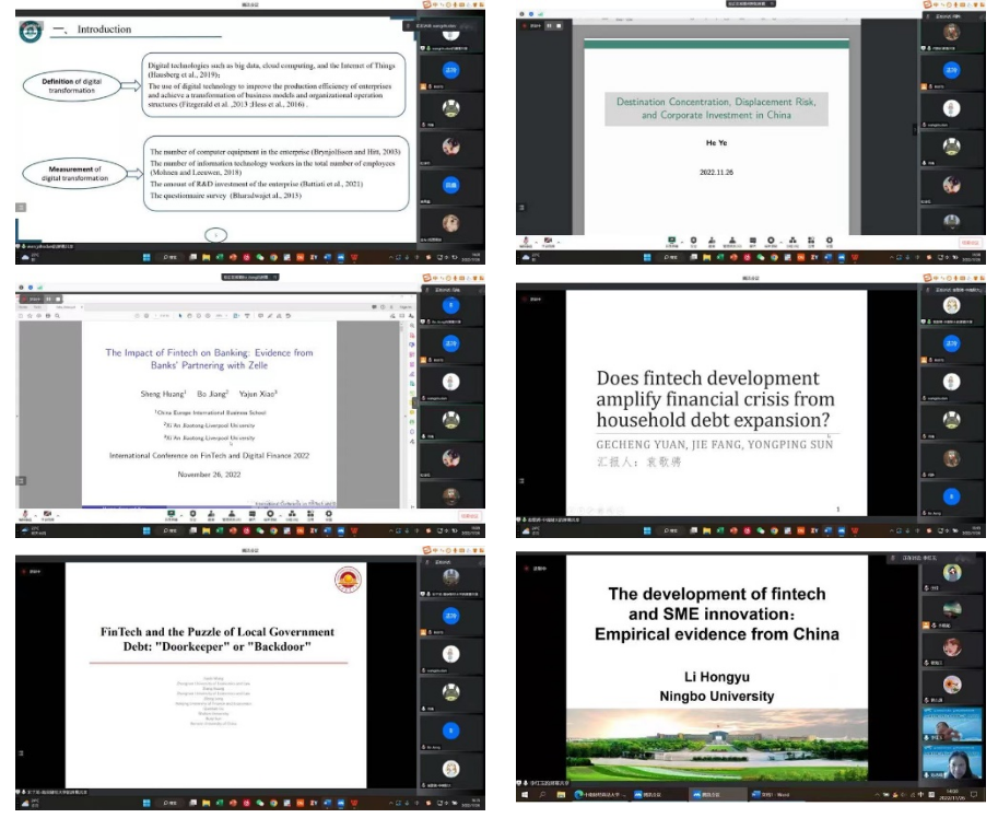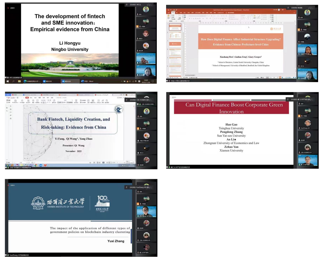来自宁波大学商学院的李红玉博士报告了论文《The Development of Fintech and SME Innovation: Empirical Evidence from China》,中南大学商学院的曾古滇博士报告了论文《How Does Digital Finance Affect Industrial Structure Upgrading? Empirical Evidence from Chinese Prefecture-Level Cities》,中央财经大学金融学院的王琦博士报告了论文《Bank Fintech, Liquidity Creation and Risk-taking: Evidence from China》,厦门大学财务管理与会计研究院的严泽浩博士报告了论文《Can Digital Finance Boost Corporate Green Innovation》,哈尔滨工业大学管理学院的张羽兮博士报告了论文《Causal Effect of Local Government Governance and Blockchain Industrial Agglomeration》。参会学者对论文进行了互评,陈选娟教授对论文进行了总结评述。