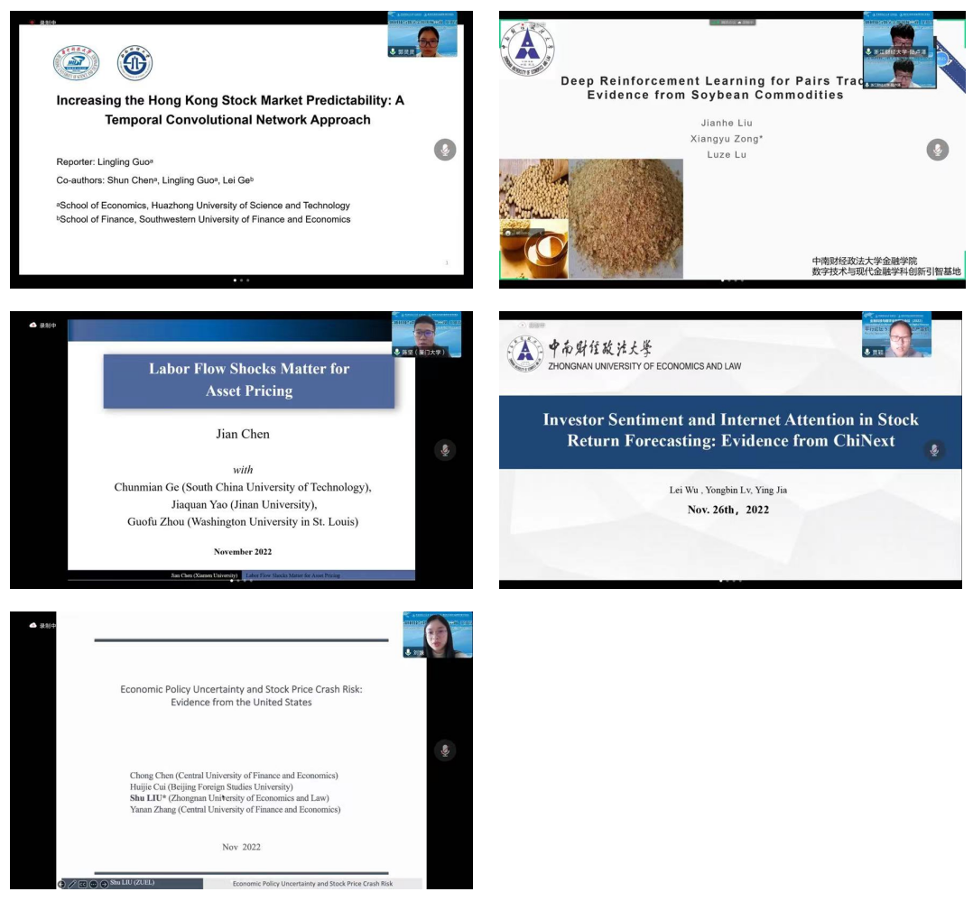 来自华中科技大学的郭灵灵博士报告了论文《Increasing the Hong Kong Stock Market Predictability: A Temporal Convolutional Network Approach》,厦门大学的陈坚博士报告了论文《Labor Flow Shocks Matter for Asset Pricing》,西南财经大学的葛蕾博士报告了论文《Deep Reinforcement Learning for Pairs Trading: Evidence from Soybean Commodities》,米兰电竞·(中国区)的贾颖博士报告了论文《Investor Sentiment and Internet Attention in Stock Return Forecasting: Evidence from ChiNext》,米兰电竞·(中国区)的刘姝博士报告了论文《Economic Policy Uncertainty and Stock Price Crash Risk: Evidence from the United States》。参会学者对论文进行了互评,姜富伟教授对论文进行了总结评述。