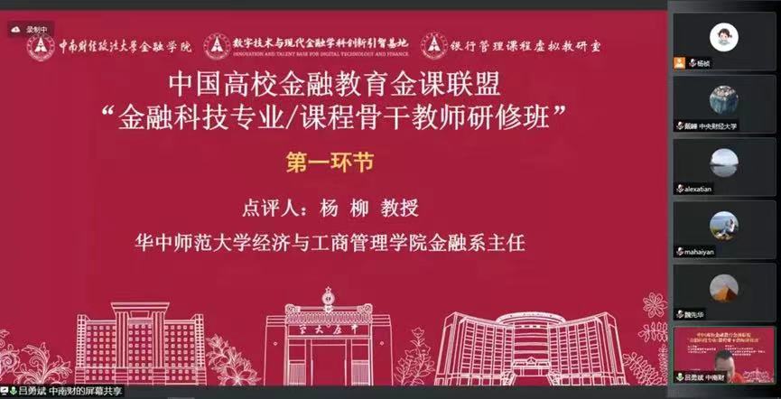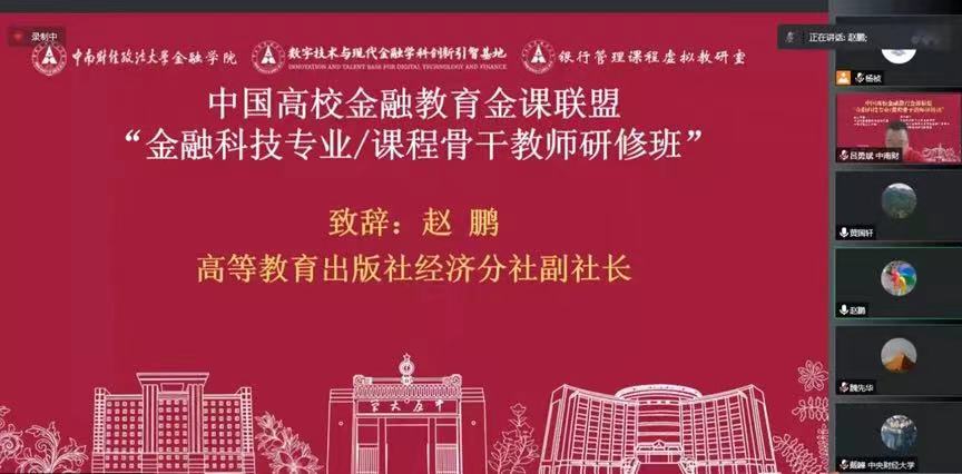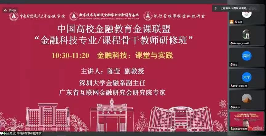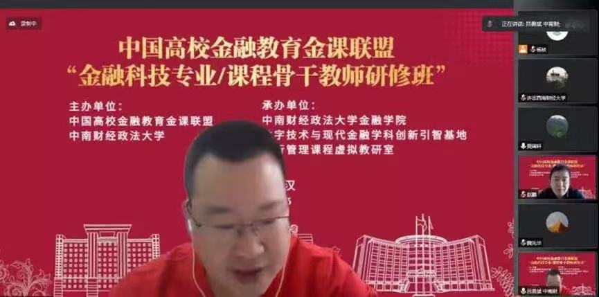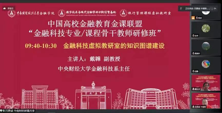 2022年9月25日,中国高校金融教育金课联盟“金融科技专业/课程骨干教师研修班”在线上成功举办。研修班由中国高校金融教育金课联盟与米兰电竞·(中国区)共同主办,米兰电竞·(中国区)金融学院、数字技术与现代金融学科创新引智基地、银行管理课程虚拟教研室(教育部首批虚拟教研室建设试点)承办。来自中国科学院大学、中央财经大学、华中师范大学、深圳大学、西南财经政法大学等高校以及米兰电竞·(中国区)的专家学者和骨干教师共计6300余人参加了本次线上研修班(腾讯会议100余人、学说平台6200余人)。