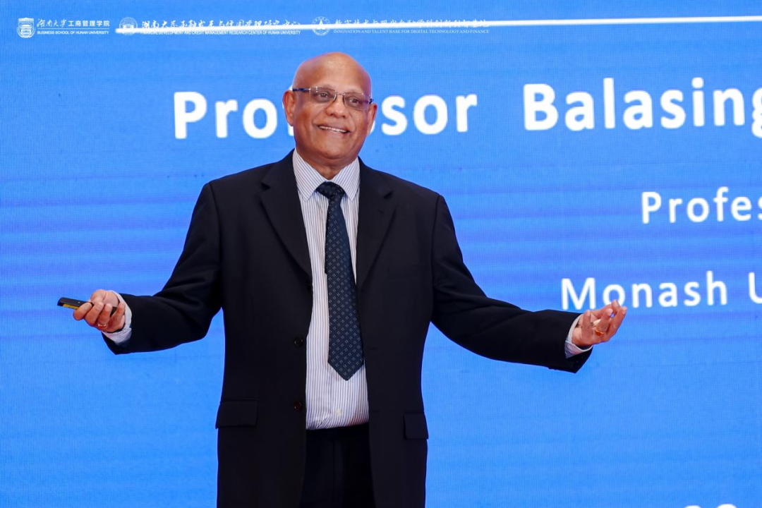 Balasingham Balachandran介绍金融市场与公司治理国际学术会议举办15届来的基本情况,表示今年首次在中国举办,感谢湖南大学的大力支持。