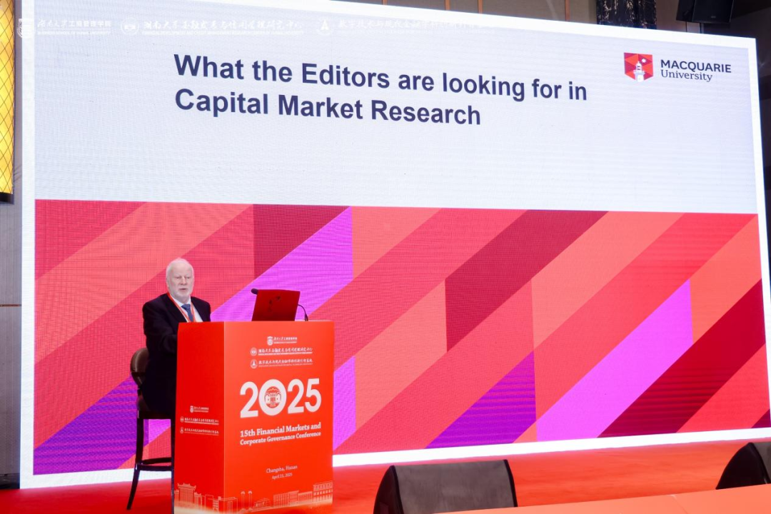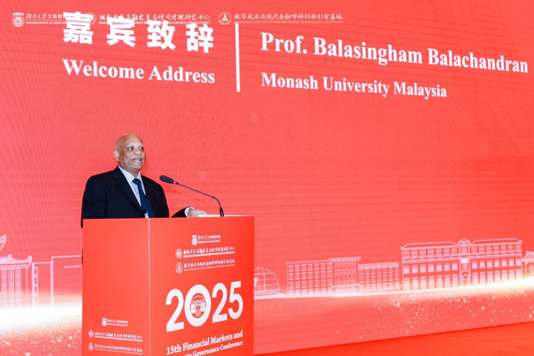 4月22—24日,第十五届金融市场与公司治理国际学术会议(15th Financial Markets and Corporate Governance Conference 2025,FMCG)在长沙举行。湖南大学党委副书记唐珍名、历届会议发起人Balasingham Balachandran出席开幕式并致辞。