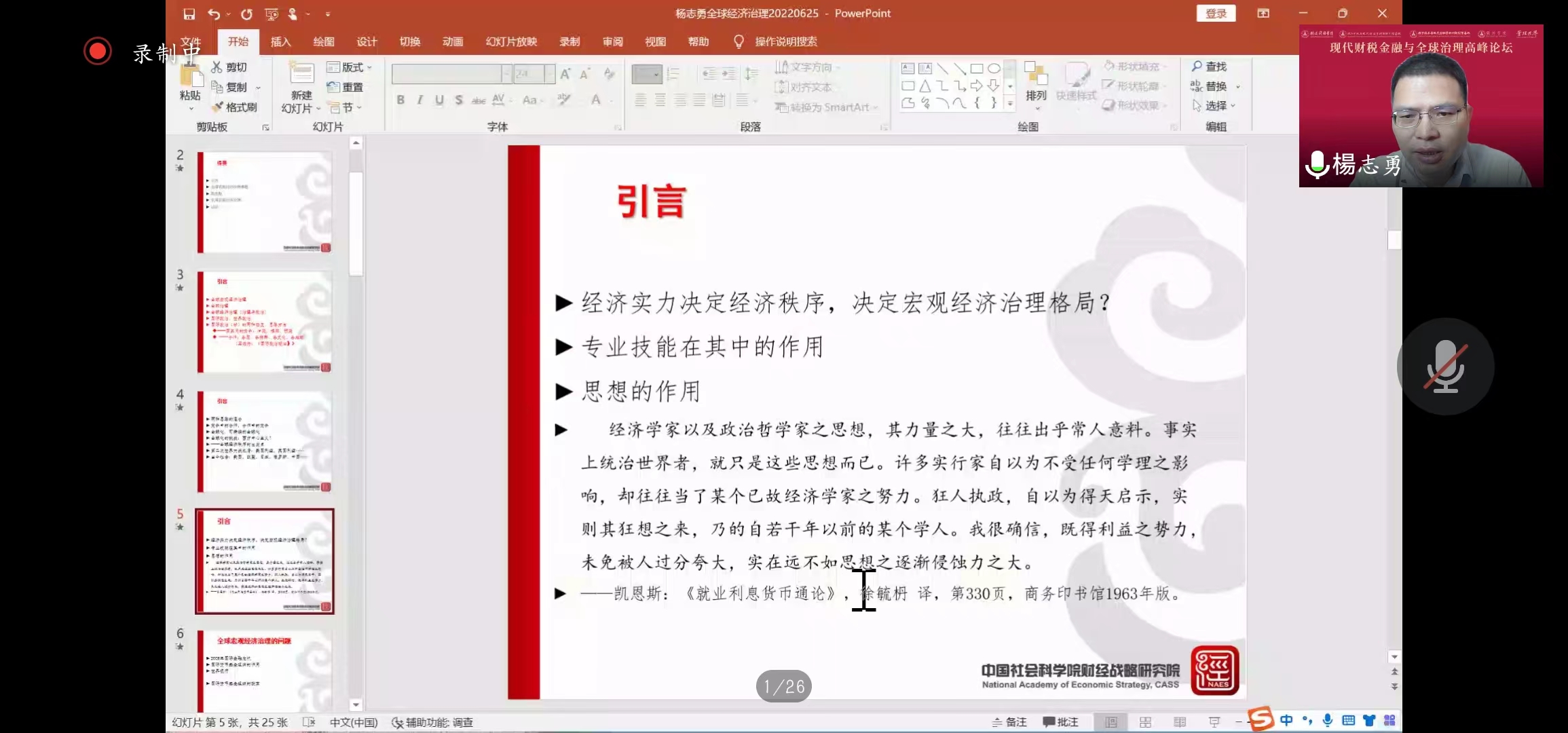 Professor Zhiyong Yang delivered a lecture on "Global Macroeconomic Governance: A Keynesian-centric Analysis". Starting from the specific issues of global macroeconomic governance, Professor Zhiyong Yang put forward the view that the national basis of global macroeconomic governance is the willingness of all countries to negotiate based on the international Monetary Fund reform, the new international economic and trade rules and the Russia-Ukraine conflict. Based on Keynesian theory, Professor Zhiyong Yang pointed out that the governance of macro issues of globalization requires countries to sit down for dialogue and communication, and discuss economic issues in connection with politics and ideology.
