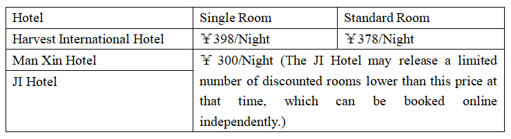 Participants need to book your own hotel and bear the cost. Hotel reservation please log in to the official website of the conference, click the "Hotel Reservation" TAB on the home page, select the hotel, check-in date and check-out date, and confirm the "Reservation". Due to limited room availability, please book in the system before the hotel reservation deadline: May 14, 2023. If you do not fill in the reservation information in the system after the deadline, you will book the hotel by default.
