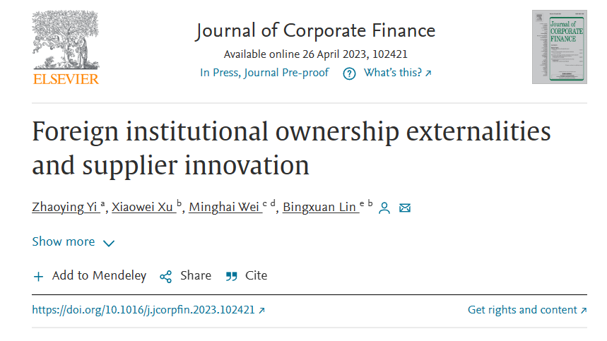 Professor Bingxuan Lin, the Foreign Core Scholar of the base, has published a collaborative paper titled "Foreign institutional ownership externalities and supplier innovation" in the Journal of Corporate Finance.