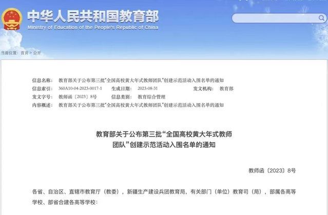 023年9月1日,教育部公布第三批“全国高校黄大年式教师团队”创建示范活动入围名单,理论经济学教师团队成功入围。