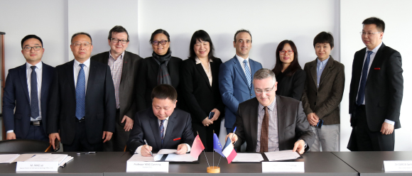 News Network (Correspondent: Fang Lei) In order to promote the exchange and cooperation between the university and foreign high-level universities, build a new platform for sino-foreign scientific research cooperation, and improve the level and quality of international talent training, our university was invited by professor Thomas Froehlicher, President of ESC Rennes School of Business in France, and Dr. Gerald Reisinger, President of the University of Applied Sciences of Upper Austria. With the approval of the Ministry of Education, our school president Yang Canming professor, professor Zhu Xinrong of School of Finance, professor Sun Qunli of School of Accounting, associate professor Lu Yuanping as well as the vice minister of Department of International Communication, Fang Lei, and these five people visited the two universities from March 17th to March 24th. During this period, together with representatives from ESC Rennes School of Business, we visited the education department of the Chinese embassy in France.