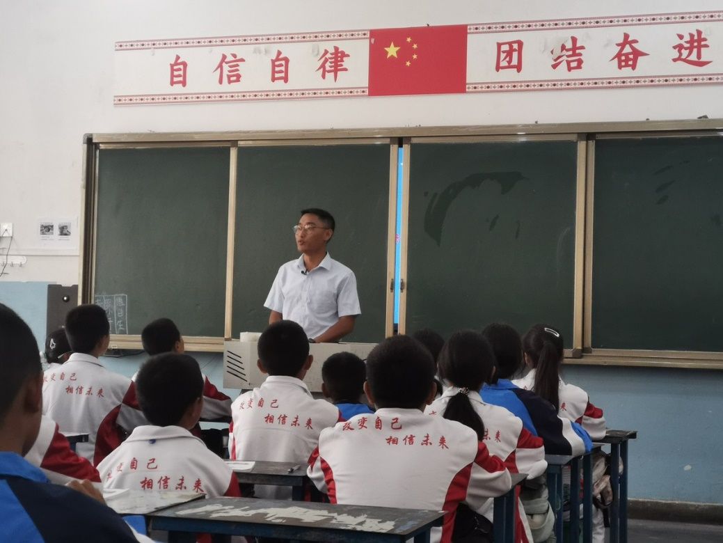 A photo shows Su Zhengmin teaching a class at a middle school in his hometown, Liangshan Yi autonomous prefecture in Sichuan province. [Photo provided to chinadaily.com.cn]