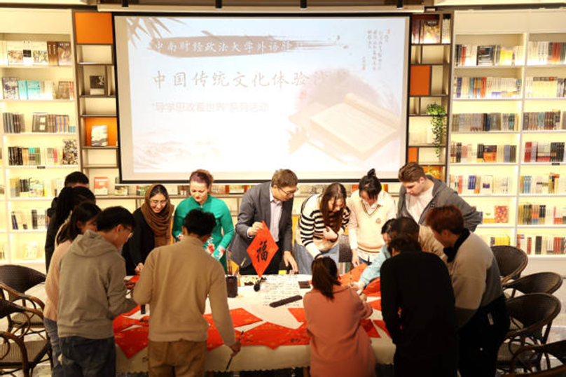 At the end of the salon, teachers and students wrote Spring Festival couplets with ink brushes, which helped them feel the gleaming glamour of traditional Chinese culture. This salon not only provided a platform for postgraduates from the School of Foreign Languages spread Chinese culture, but helped all the participants develop a deeper and multi-dimensional understanding of traditional Chinese culture.