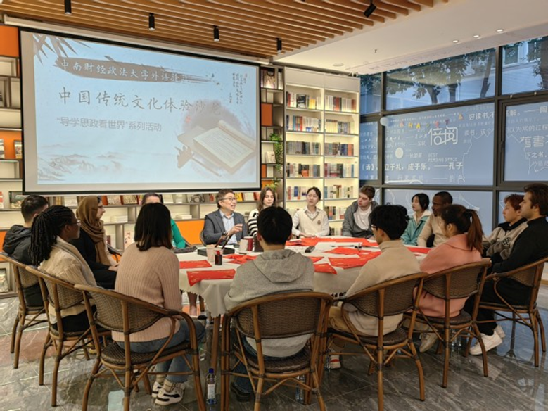 News Network (Correspondents:Zhang Ran, Zhou Ling) Aloof one knows they aren’t the snow; As faint through air soft fragrances flow.”The reading sound came from Best Reading Space (a bookstore), where a Salon for Exploring Traditional Chinese Culture (part of the activity themed on “Seeing the World through Ideological and Political Guidance”) was held on the morning of February 28th, 2023. The salon was hosted by the School of Foreign Languages and School of International Education. Professor Cai Shengqin, Dean of the School of Foreign Languages, was invited as the keynote speaker of this salon. Teacher and postgraduate representatives from both schools actively participated in the salon.