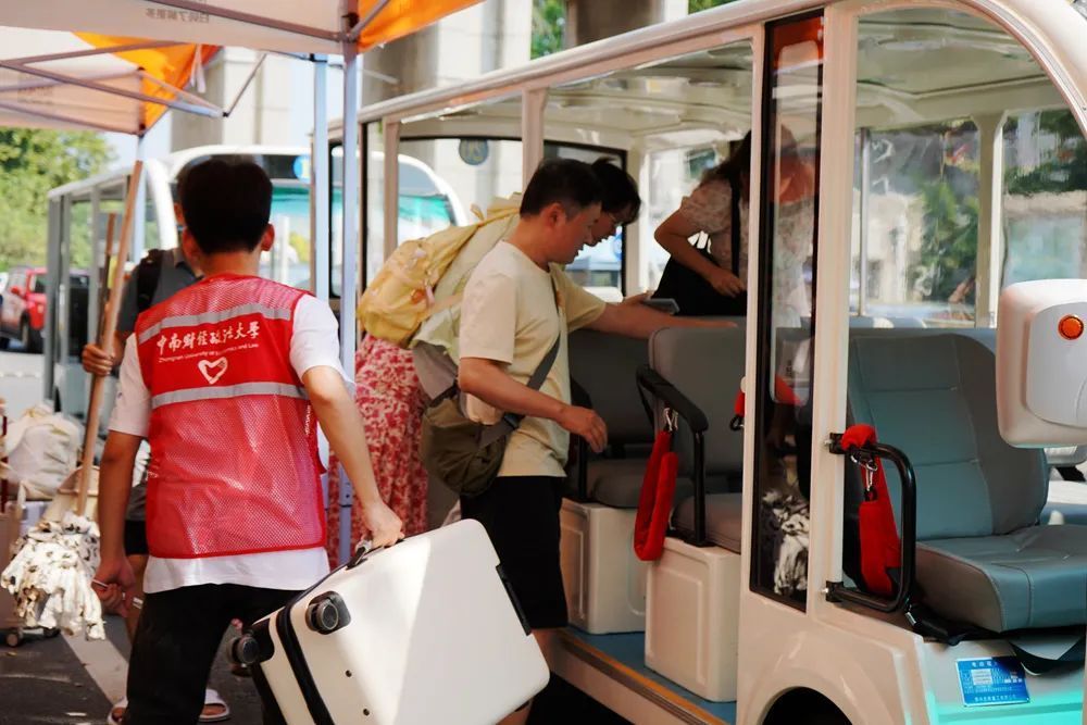 Accompanied by heads of the departments involved in the orientation work, Hou Zhenfa, secretary of the Party Committee of ZUEL, Yang Canming, ZUEL President and deputy secretary of the Party Committee of ZUEL, Chen Shi, deputy secretary of the Party Committee of ZUEL, Qin Hong, member of the CPC ZUEL Standing Committee and vice president of ZUEL, and Xu Diyu, vice president of ZUEL,were on site to inspect the welcoming event. Along the way, they greeted new students and their parents, and expressed their gratitude to the faculty and students involved in the welcoming activities