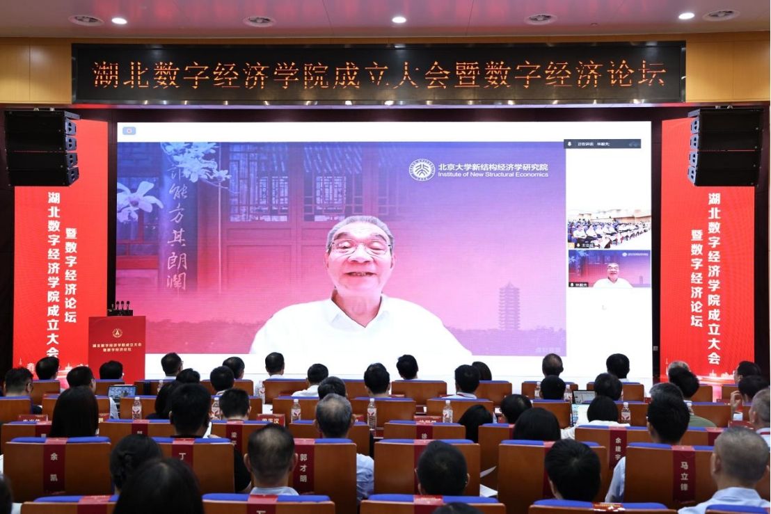 At the conference, Professor Justin Yifu Lin from Peking University, Professor Liu Shouying from Renmin University of China, and President Fang Jie from Hubei University of Economics delivered addresses. They extended congratulations on the establishment of the Hubei Digital Economy College and proposed that the College should pioneer research in digital economy for Hubei and the nation, propel the transition toward digital industrialization and industry-specific digitalization in the digital era, and thus enhance new productive forces to advance high-quality development and Chinese modernization.
