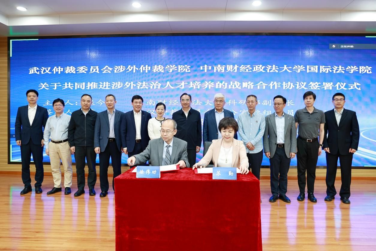 Xu Weigong, Dean of the School of International Lawof ZUEL, and Su Qin, Executive Dean of theForeign-Related ArbitrationSchool of the Wuhan Arbitration Commission,signedastrategiccooperationagreement on behalf of both parties.