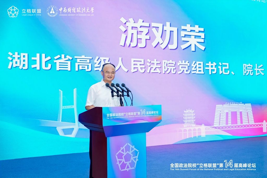 Distinguished attendees included You Quanrong, Secretary of Party Leadership Group and President of Hubei Higher People’s Court; Wang Shou’an, Secretary of Party Leadership Group and Chief Procurator of the People’s Procuratorate of Hubei; Zhou Zhenwu, Executive Deputy Secretary of Political and Legal Affairs Commission of the CPC Hubei Provincial Committee; Yang Jun, Secretary of the Party Committee and Director of Department of Justice of Hubei Province; responsible officials from the Legal Education and Pre-service Training Division of Bureau of Legal Professional Qualifications Administration of the Ministry of Justice; and university leaders from 10 alliance institutions.