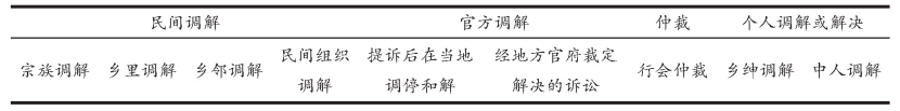 清代山林纠纷解决中逐渐形成了一套官民之间相得益彰、总体上行之有效的国家与民间的衔接和互动机制,有效实现各利益主体之间多元价值整合动态博弈的良性互动。首先,以国家为解决纠纷主体,有诉讼和调解等途径,官府调解往往是基于双方当事人争议较大,通过民间调解难以达成双方的认同。其次,社会组织也在纠纷解决实践中发挥重要作用,其解决纠纷的主要方式包括调解与仲裁。社会组织调解与官方调解不同,其是一种民间调解,主要包括宗族调解、乡里调解、乡邻调解、民间组织调解等不同的形式,仲裁主要是指行会裁决,最后是个人调解或解决,例如乡绅或中人调解。[28]