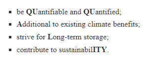 这些认证项目都必须符合QU.A.L.ITY标准,即可量化、对现有气候效益具有额外性、努力实现长期储存和有助于可持续性发展。