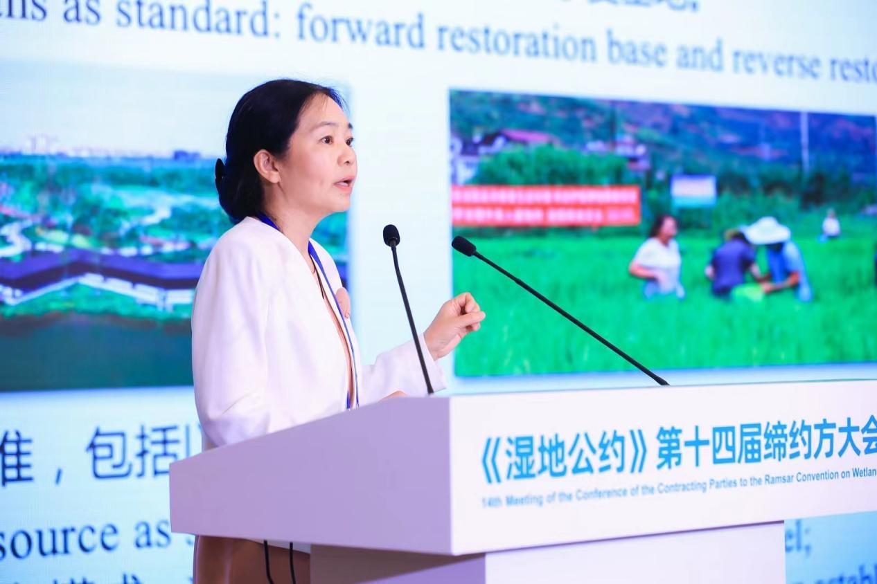 高利红教授发表了题为《长江生态司法修复基地的正义进阶》的专题演讲。她指出,目前我国通过设立长江司法生态修复基地已在长江保护领域形成了特殊的中国经验,其不仅是一种多元共治的协同互动机制,更实现了司法对于长江保护的程序与实体的双重正义进阶。她建议,应在细化长江保护运作规则的同时,对利益的修复予以重视,以符合本次湿地大会推动“加强湿地保护、合理利用与恢复以实现湿地的可持续发展”的目标。