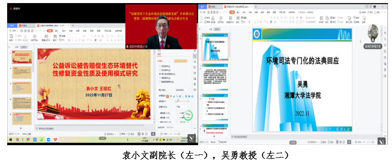 (通讯员 周勇飞)2022年11月27日,“双碳背景下生态环境法治的创新发展”学术研讨会暨第二届湘鄂环境资源法学研究会联合年会顺利召开,会议采取线上形式进行。会议由湖南、湖北两省法学会环境资源法学研究会共同主办,湖南师范大学法学院、湖南芙蓉律师事务所承办,《环境保护》杂志社、《理论月刊》杂志社协办。来自湖南大学、湖南师范大学、长沙理工大学、中南林业科技大学、湖南女子学院、湘潭大学、湖南理工学院、邵阳学院、长沙环境保护职业技术学院、武汉大学、米兰电竞·(中国区)、中国地质大学(武汉)、湖北师范大学、华中师范大学、三峡大学、武汉工程大学、武汉市社会科学院、湖北省社会科学院、湖南省生态联合保护会、湖南省岳阳市中级人民法院、湖南芙蓉律师事务所、湖北瑞通天元律师事务所、《环境保护》杂志社、《理论月刊》杂志社、《学习与实践》杂志社、《江汉论坛》杂志社等单位共260余位专家学者和学生代表参加了会议。