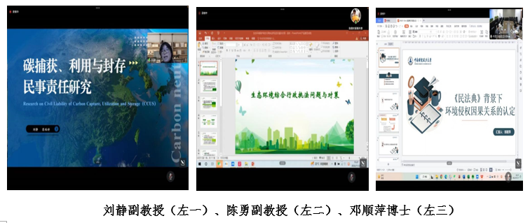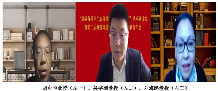学术交流环节由湖北省环境资源法学研究会副会长、华中科技大学法学院王干教授主持。湖北省环境资源法学研究会副会长、武汉大学法学院柯坚教授及湖南师范大学法学院文同爱副教授围绕“双碳背景下的环境法治创新发展”作了引导性发言。