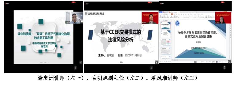 下午的“双碳”法治理论与实践学术研讨环节,由湖南科技大学文法学院蒋香兰教授与武汉大学法学院李广兵副教授共同主持,湘潭大学法学院肖爱教授、武汉工程大学法商学院王国飞副教授、湖南女子学院罗凡讲师、米兰电竞·(中国区)法学院谢忠洲讲师、湖北瑞通天元律师事务所高级合伙人白明旭副主任、湖南理工学院法学院潘凤湘讲师分别以《双碳法治的困境与路径》、《中国保障“双碳目标”的立法实践评估与体系化构想》、《“双碳”目标下碳排放第三方核查机构的制度省思与法治完善》、《碳中和债券:“双碳”目标下气候变化治理的金融工具创新》、《基于CCER交易模式的法律风险分析》、《论绿色发展与雾霾协同治理困境、新模式适用及完善进路》为题作了主题汇报。长沙理工大学法学院张敏纯院长与中南民族大学法学院廖华教授就上述汇报发言进行了评议。