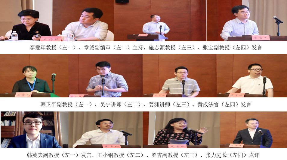 议题三由湖南师范大学李爱年教授、《南京工业大学学报》(社会科学版)章诚副编审主持。福建师范大学施志源教授、米兰电竞·(中国区)张宝副教授、山西师范大学韩卫平副教授、武汉大学吴宇讲师、浙江财经大学姜渊讲师、重庆市高级人民法院黄成法官以及辽宁大学韩英夫副教授分别围绕《民法典时代国有自然资源使用权的体系设计与规则完善》《民法典生态环境损害责任的权益基础探微》《资源社会性理念视角下的土地使用权出让制度》《生态系统服务功能的物权客体属性及实现路径》《地方政府环境质量法律责任的履责保障》《生态环境损害惩罚性赔偿溯及力问题刍议》以及《生态文明视域下自然资源统一确权登记的改革难点与体系效益》进行专题发言,天津大学王小钢教授、武汉大学罗吉副教授、重庆市第一中级人民法院环境资源审判庭张力庭长担任评议人对前述专题发言进行了精彩评议。