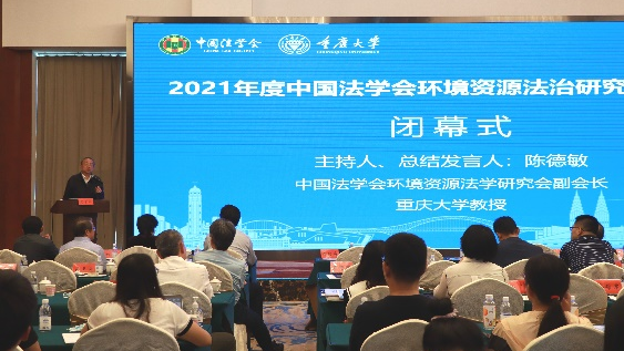 闭幕式上,中国法学会环境资源法学研究会副会长陈德敏教授主持并总结发言。他表示此次方阵论坛虽为第一期环境资源法治论坛五家成员单位轮流主办的收官之作,但并不是中国法学会环境资源法治方阵的终点,而是中国环境资源法治方阵扬帆起航的另一个崭新起点。中国法学会环境资源法学研究会将在未来继续支持和推进环境资源法治方阵的科研工作,继续围绕环境资源法治领域的研究重点,将理论研究与实践探索紧密结合,为推动环境资源法治建设贡献力量。