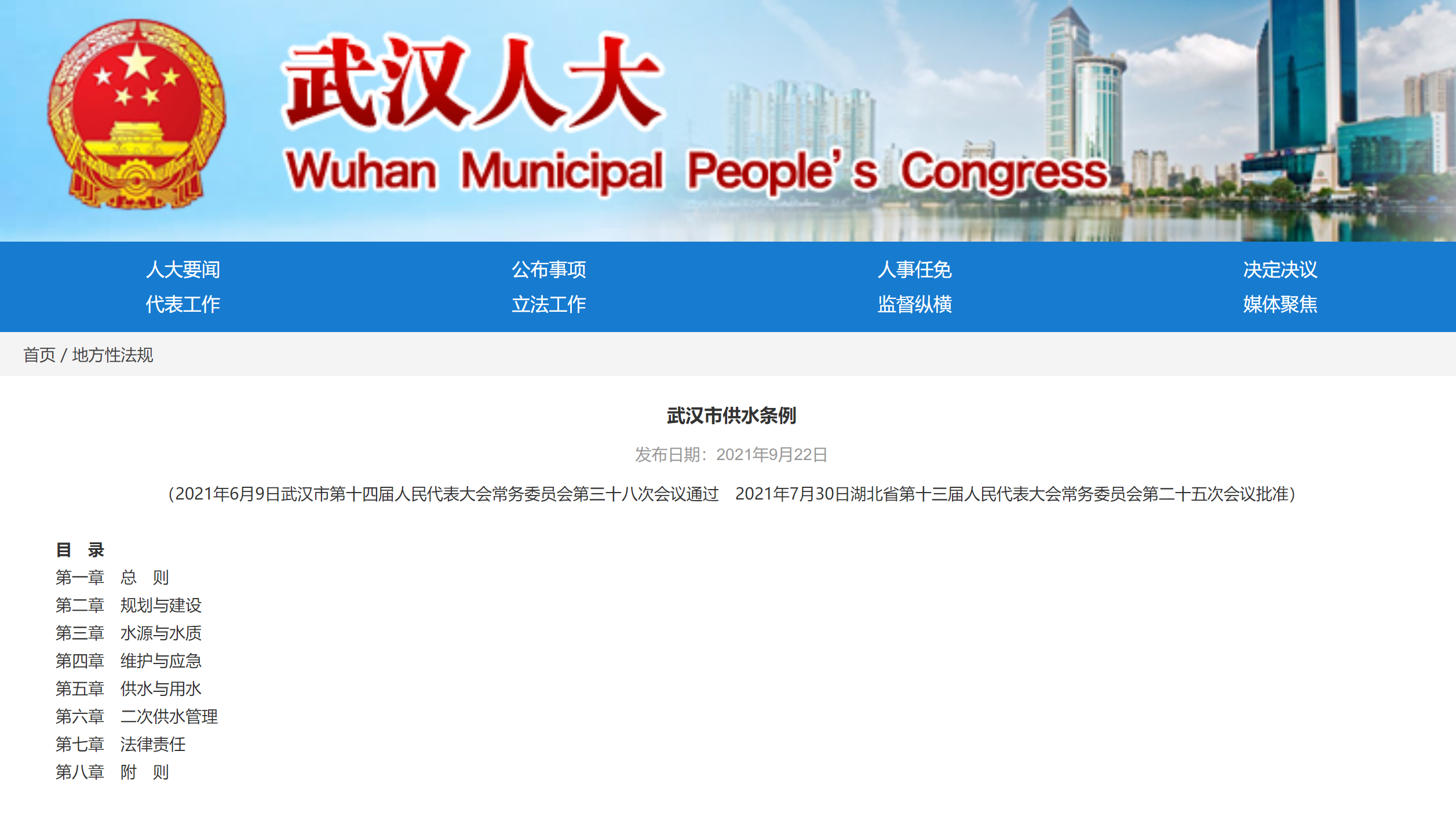 2021年6月9日经武汉市第十四届人大常委会第三十八次会议通过,于7月30日经湖北省第十三届人民代表大会常务委员会第二十五次会议批准,《条例》将于2021年11月1日起施行。