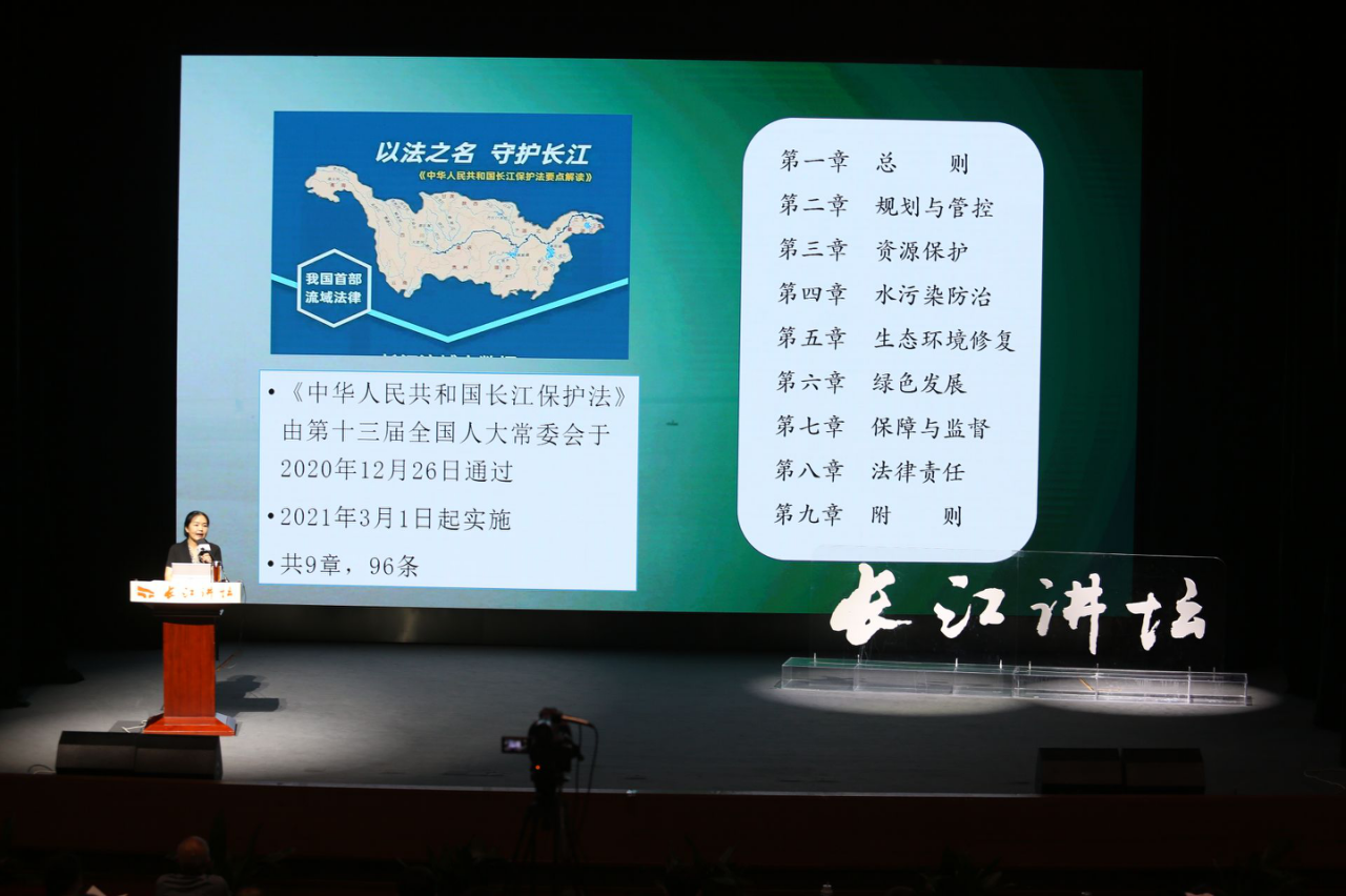 2021年7月9日下午,湖北省普法工作办公室、湖北省法学会在省图书馆举行《长江保护法》专题讲座,活动邀请我所环境资源法学学科带头人、博士生导师高利红教授作专题宣讲。本次讲座采取线上线下相结合的形式,通过长江云APP、“湖北法学”微博等网络平台同步现场直播。省发改委、省经信厅、省公安厅、省司法厅、省自然资源厅、省生态环境厅、省水利厅、长江水利委、武汉海关等省直单位的执法、司法工作人员约300余人现场听取了本场讲座,同时,近6万名观众通过在线直播渠道收看了本场讲座。