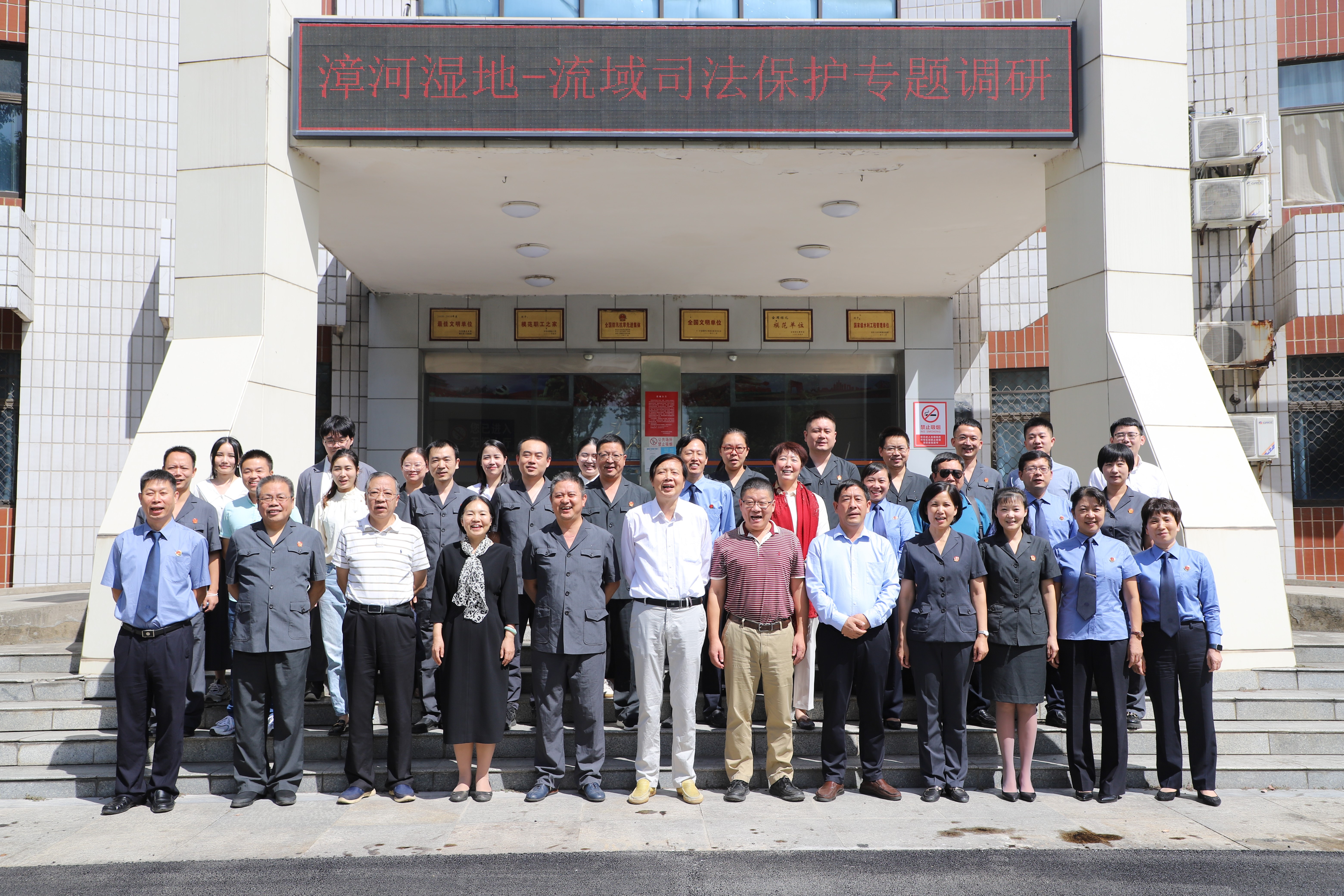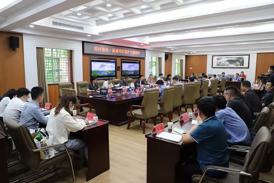 本次调研活动由武汉海事法院副院长裴缜主持。荆门市中级人民法院党组书记、院长何震致辞,漳河工程管理局党委副书记、纪委书记王永兵介绍了漳河水库湿地的保护情况。