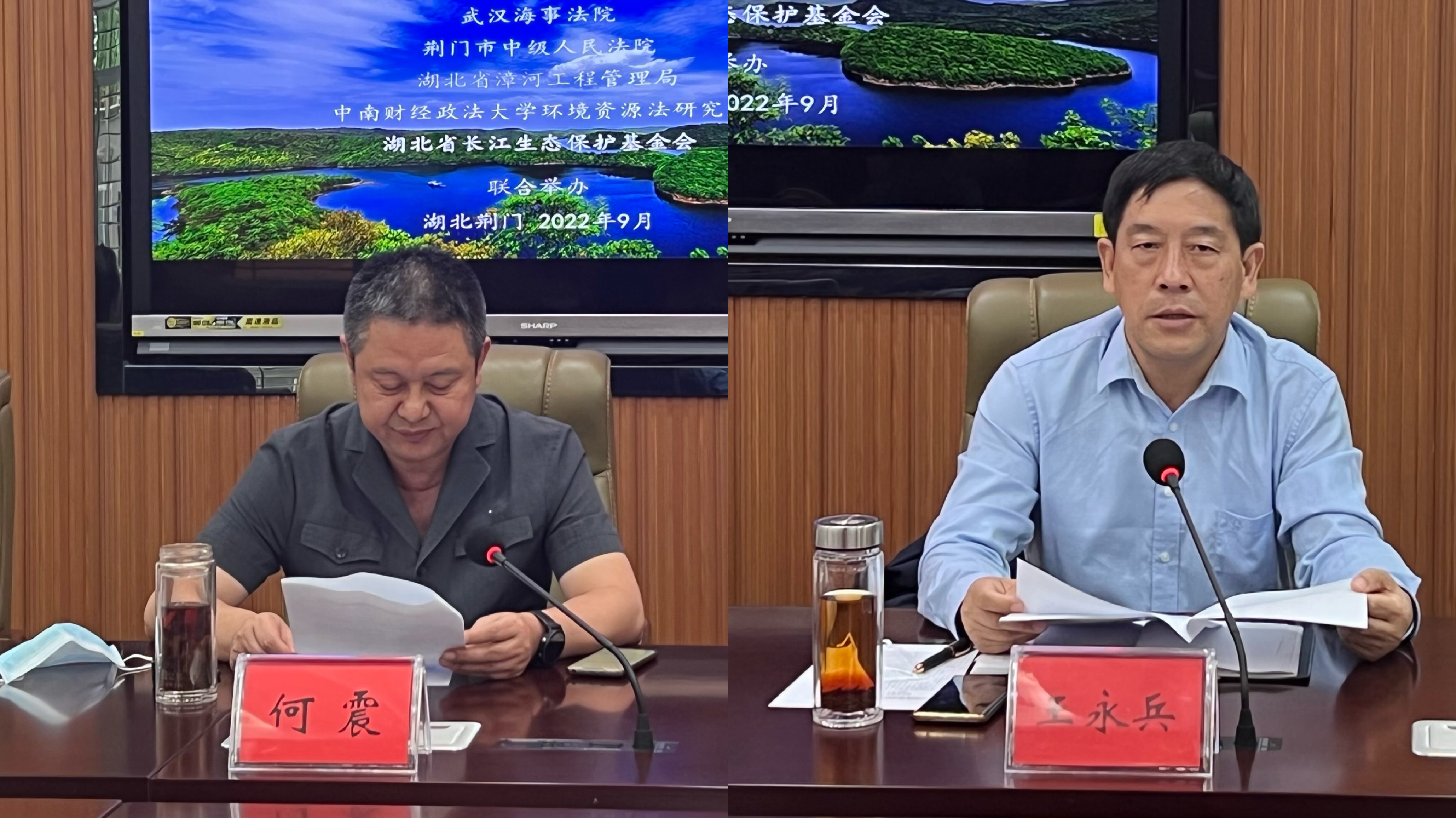 会议由武汉海事法院副院长裴缜主持。荆门市中级人民法院党组书记、院长何震致辞,漳河工程管理局党委副书记、纪委书记王永兵介绍了漳河水库湿地的保护情况。