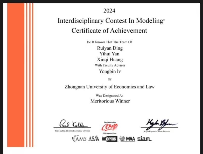 金融学院本科生在2024年美国大学生数学建模竞赛中喜获佳绩