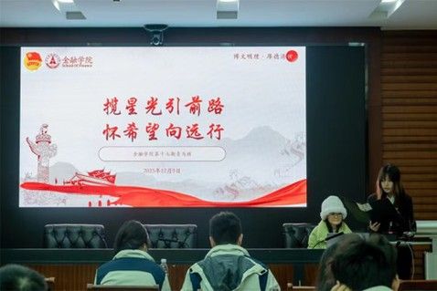 (通讯员 杨博雅 学生记者 韩飞虎)为深入学习习近平新时代中国特色社会主义思想,深刻领悟团的十九大精神,响应习近平总书记对青年团员的期望,2023年11月,金融学院各团支部开展了“以学促知怀青云志,以知促行谱奋斗诗”主题团日活动。“我们是五月的花海,用青春拥抱时代,我们是初升的太阳,用生命点燃未来。”作为新时代新青年,我们也应当像歌中所说,用我们的青春和热情去拥抱时代,去融入社会。造价2201团支部成员用深情...