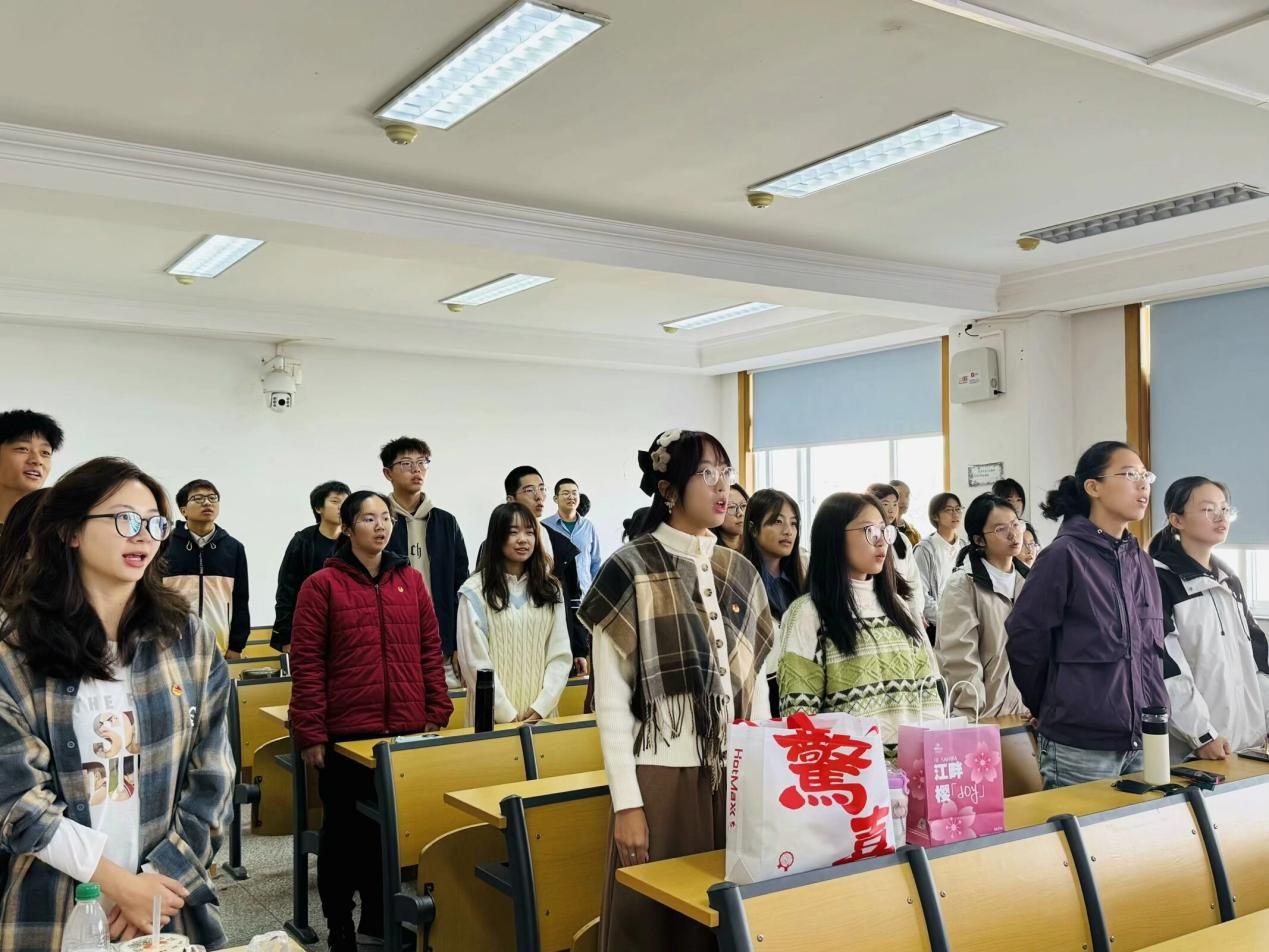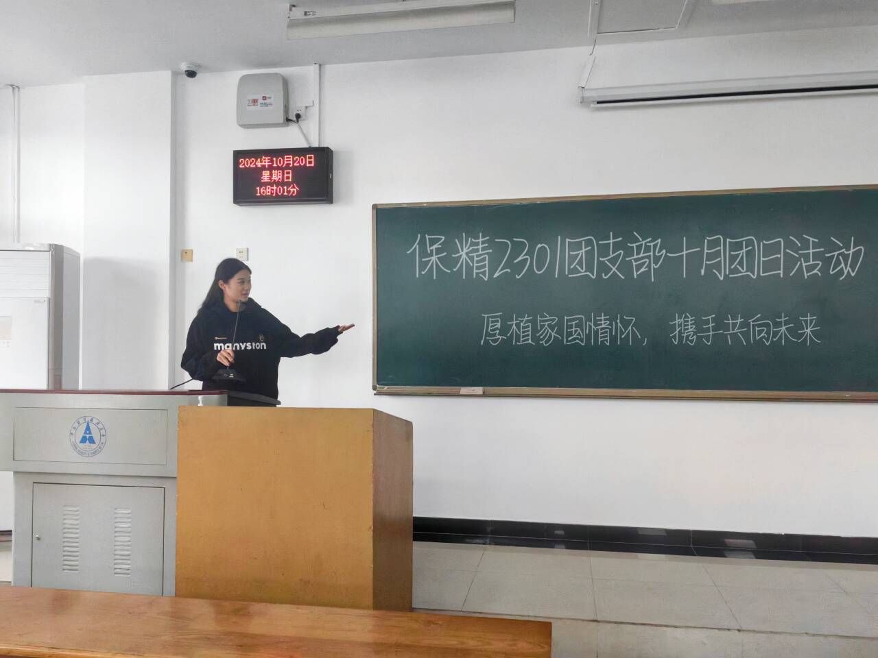 (通讯员 陈远娇 学生记者 胡梦瑶 摄影 曾至媛)为深入学习贯彻习近平总书记系列重要讲话精神,强化思想政治引领,造价2201团支部于10月24日下午5点在文澜104教室开展了“厚植家国情怀,携手共向未来”主题团日活动。此次活动内容丰富、形式多样,旨在引导支部成员增强理论素养、积极投身社会实践,为强国建设、民族复兴伟业贡献青春力量。第一项,奏唱团歌。“我们是五月的活动花海,用青春拥抱时代;我们是初升的太阳,用生命点燃未...