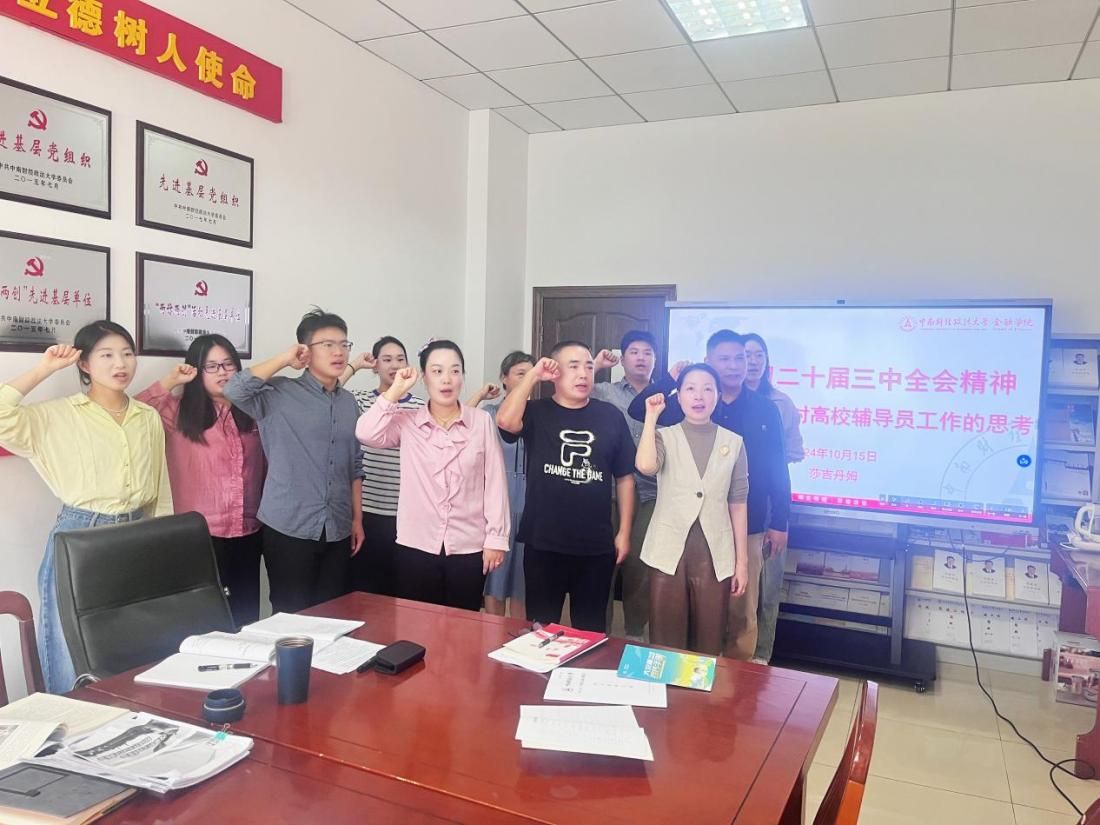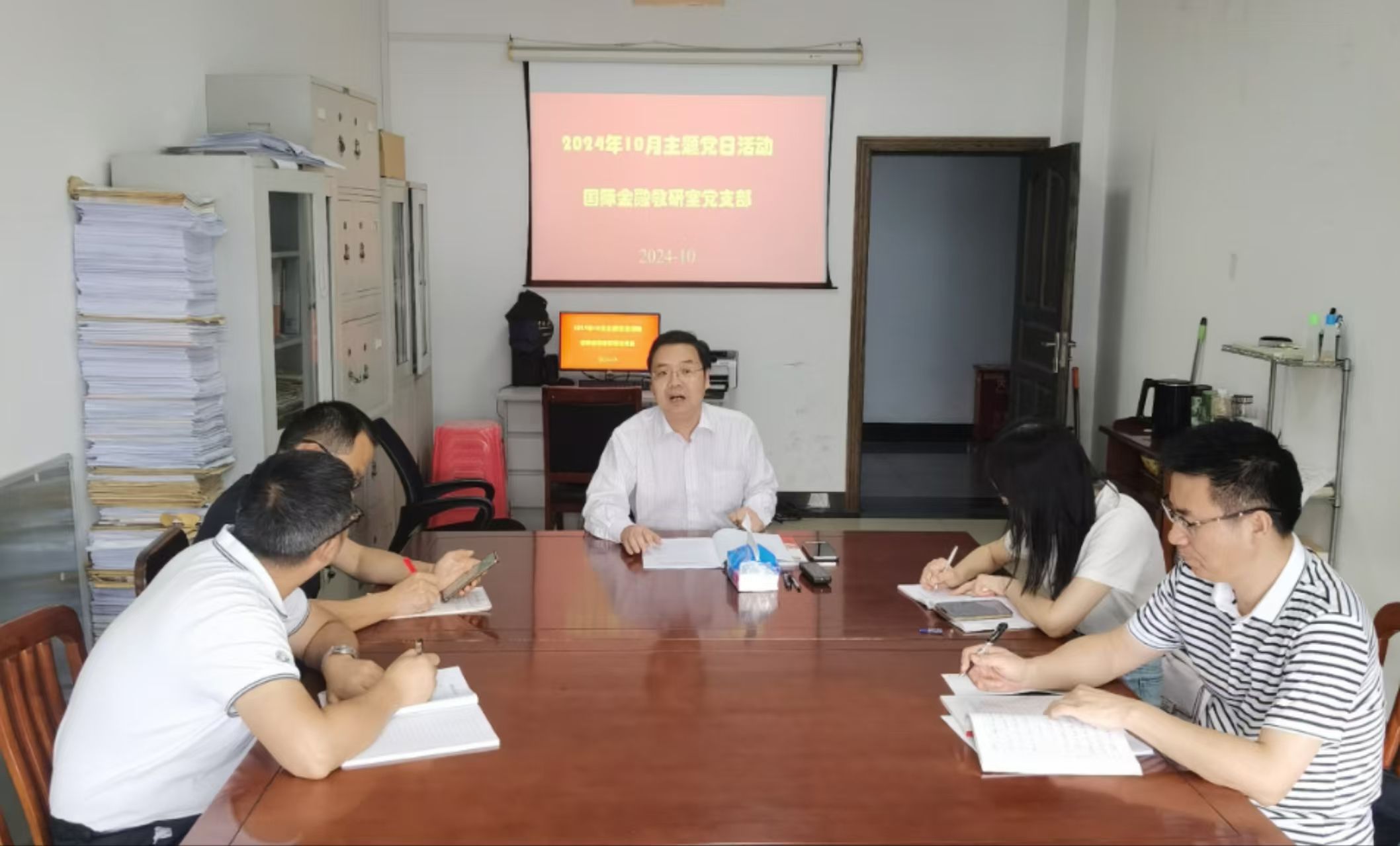 (学生记者 张露文)10月17日下午,金融学院保险系教职工党支部、研究生2024级保险学和保险硕士党支部在文澴楼112教室开展十月份“支部主题党日”活动,主题为“坚定不移推动改革创新,为高质量发展增添动力”,由24级保险系学生党支部书记杨雪飞主持。活动伊始,学生党支部书记杨雪飞带领全体党员重温入党誓词并诵读《中国共产党章程》。随后,保险系教职工党支部书记周艳丽以“理解把握习近平新时代中国特色社会主义思想的世界观...