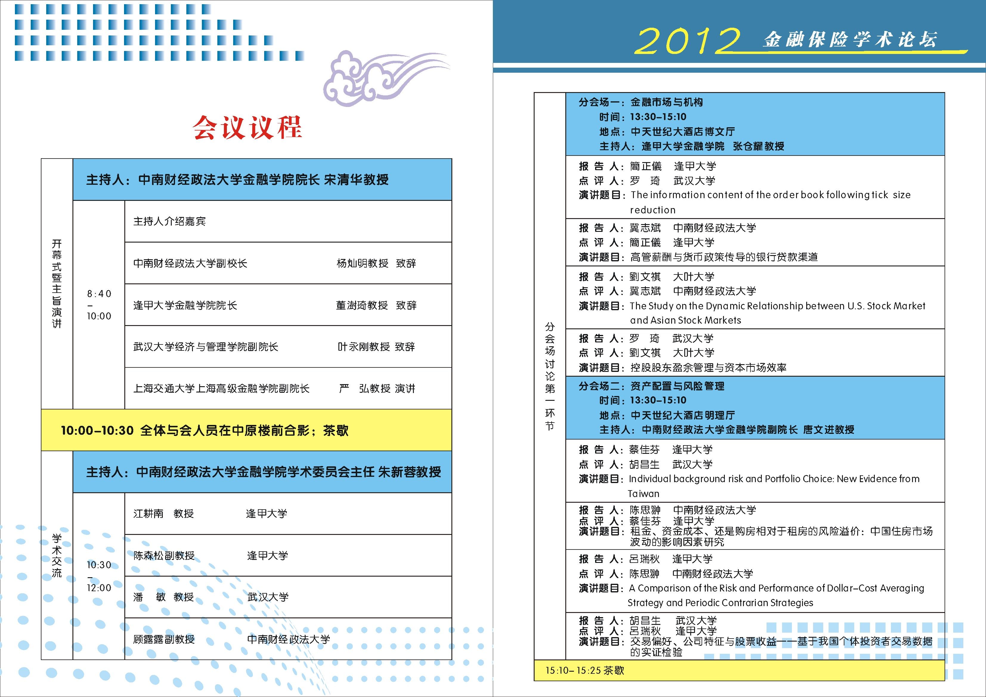 各位老师,由我院承办的2012金融保险学术论坛将于本周五上午