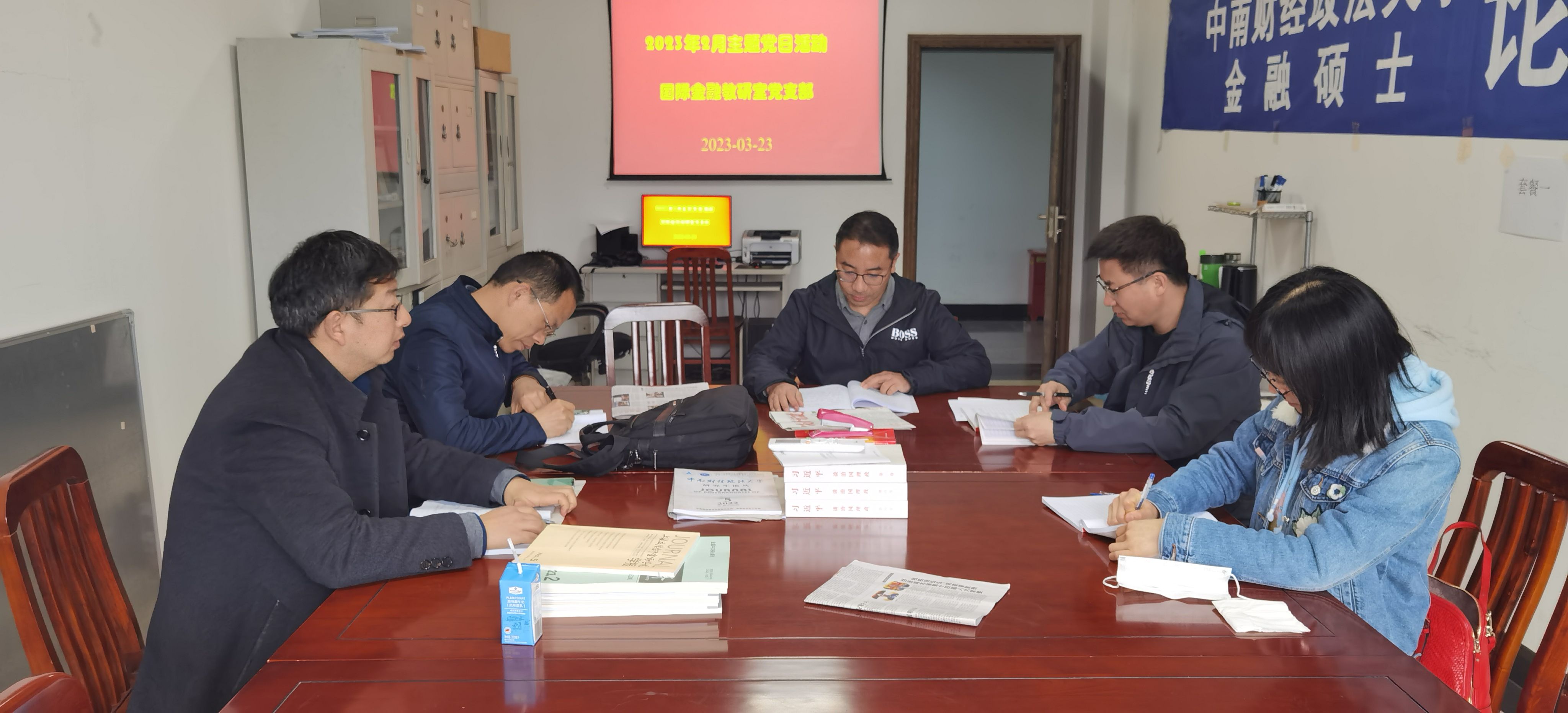 (通讯员 杨洋)3月23日下午,按照学校党委部署,金融理论教研室党支部在文泉南610会议室开展3月份“支部主题党日”活动。活动由支部书记庄子罐主持。支部党员重温了入党誓词,诵读了党章,现场交纳了党费。本次主题党日活动的主题是“学思践悟新思想,团结奋斗开新局——深入学习贯彻党的二十届二中全会精神和2023年全国两会精神”。支部书记庄子罐带领党员同志一起学习《中国共产党第二十届中央委员会第二次全体会议公报》《党和国...