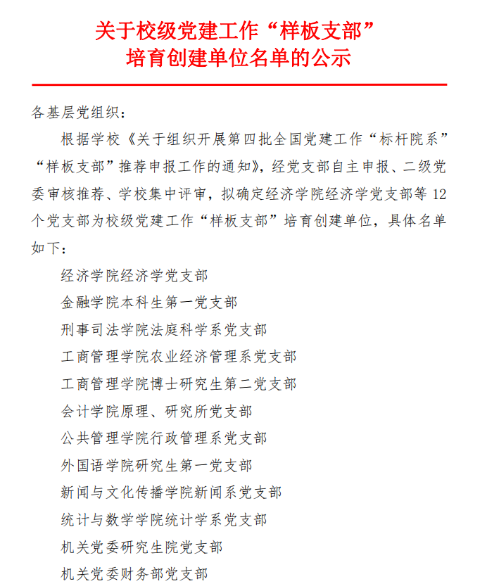 喜报:金融学院本科生第一党支部荣获校级党建工作“样板支部”培育创建单位