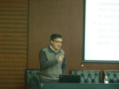 本期论坛的主讲嘉宾是中国人民大学商学院财务与金融系许年行副教授。许教授就其与合作者的工作论文“Does political connection help firms evade fraud detection? Evidence from China(企业的政治联系可以帮助企业在违规时避免被发现吗?—来自中国的数据)”进行了专题报告。该论文基于中国资本市场2000-2010年的341个样本数据,按照上市公司是否具有政治联系、上市公司性质等进行分类,对中国上市公司的政治联系与企业违规的关系进行了深入研究。研究结果表明:(1)与没有政治联系的上市公司相比,具有政治联系的上市公司出现违规的可能性更大,而且违规被发现的概率更小;(2)在违规被发现并被处罚的情况下,具有政治联系的上市公司从出现违规到被监管部门处罚的时间周期较长。论文通过进一步分析发现,上市公司违规被延期处罚的可能原因有两点,一是减小处罚的严重程度,二是减轻对上市公司高管的职业影响。最后论文提出,具有政治关联的上市公司可以在一定程度上逃避处罚、或被延期处罚,虽然给违规的上市公司及其高管带来了好处,但从整个市场的角度看,这一现象有损投资者的权益和我国资本市场的发展。